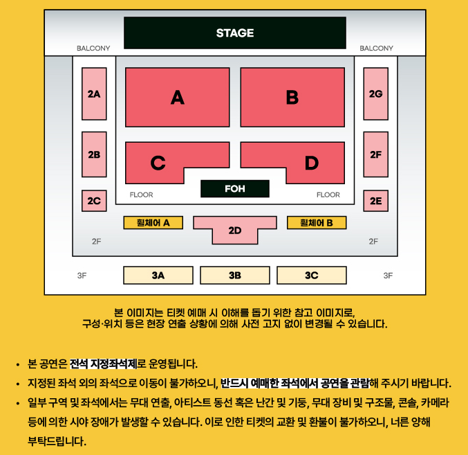 - 쾌적한 공연 관람 및 안전사고 예방을 위해 스태프의 안내를 따라주시기 바랍니다.